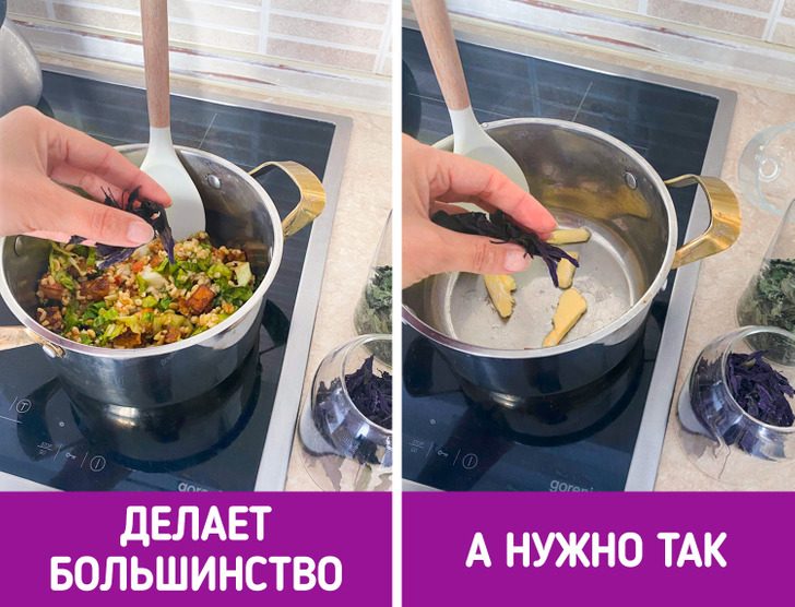 Несмотря на то что во многих рецептах рекомендуют добавлять приправы и свежую зелень в конце приготовления блюда, итальянские шеф-повара делают с точностью до наоборот. Когда они готовят еду, всегда добавляют специи в начале и отправляют их в кастрюлю вместе с маслом. Таким образом вкус получается более насыщенным.