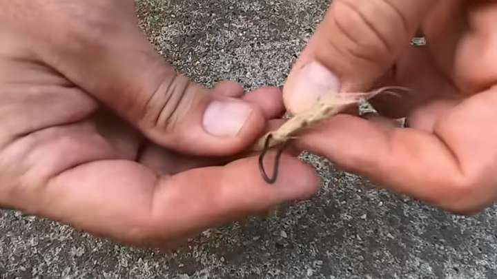 К верёвке прикрепите проволоку. С помощью проволоки проденьте верёвку в шланг.