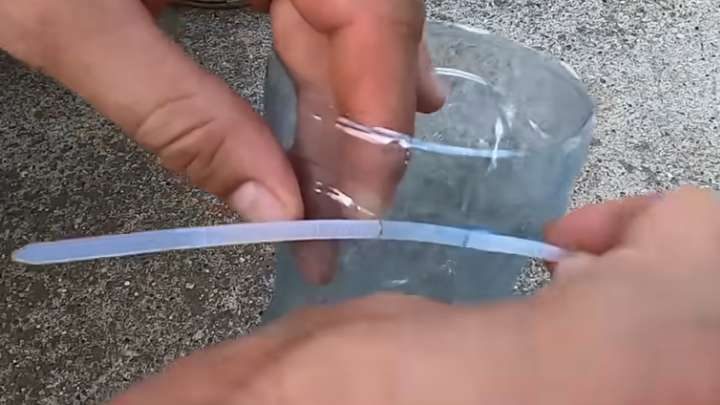Шланг подрежьте до нужной длины: от бутылки до грядки.