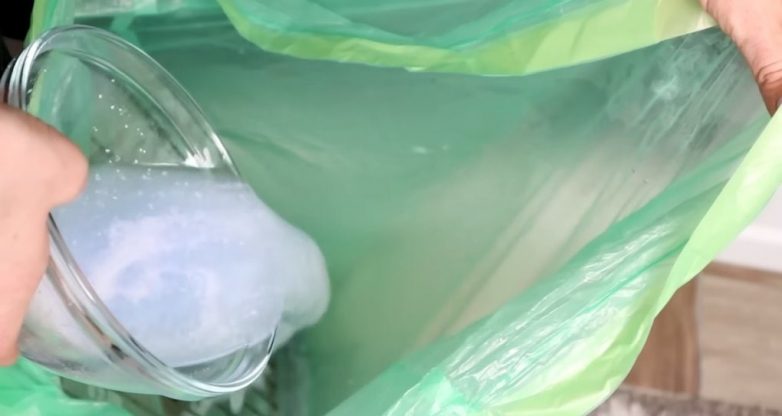 Налейте полученное средство в пакет с решеткой.
