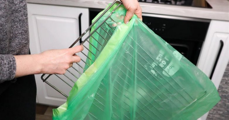 Чтобы быстро очистить даже сложные загрязнения на решетке, поместите решетку в большой пакет.
