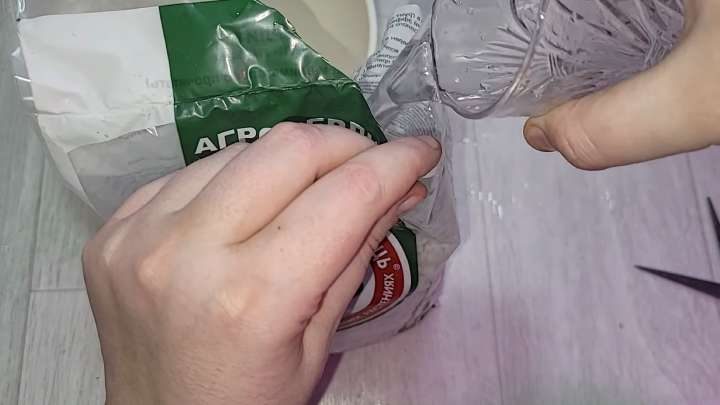 Совет № 9. Все садоводы знают, что дышать агроперлитом нельзя — это крайне вредно для лёгких. Чтобы не вдыхать пыль, приоткройте пакет, влейте 600 мл воды на 1-2 л перлита. Затем отрежьте край снизу пакета, чтобы вода вылилась, убирая пыль.