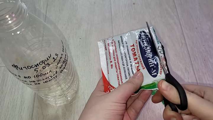 Совет № 1. Пасту фитоспорина сложно развести из пакетика. Предлагаем вам просто нарезать пакетик полосками, положить их в бутылку с водой, закрыть, потрясти и оставить на некоторое время, чтобы вся паста разошлась в воде. Остатки пластика никак не помешают.