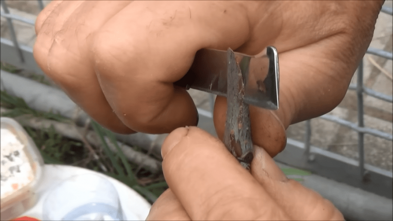 Теперь на черенке нужно сделать косой срез, длинна которого будет соответствовать трем диаметрам. В идеале сделать это нужно одним движением.