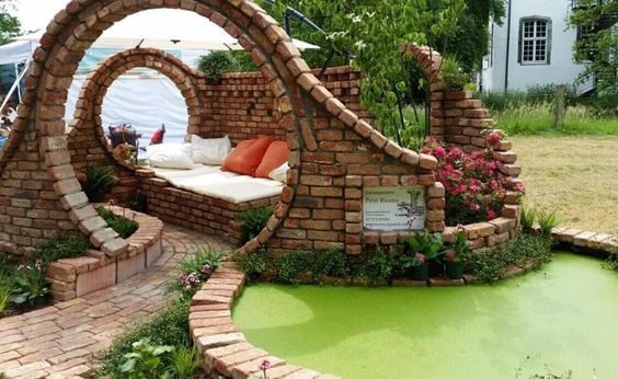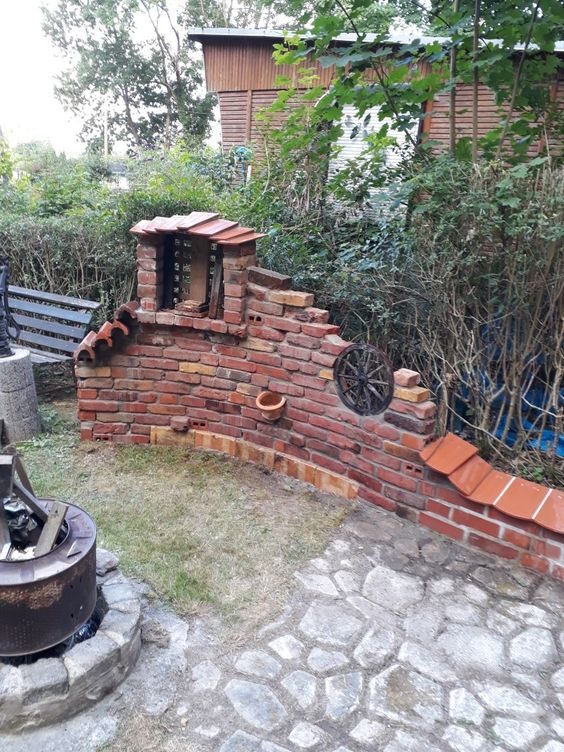 Даже небольшого количества хватит, чтобы сделать что-то нужное и полезное. Использовать кирпич можно для зонирования пространства, обустройства террас, смотровых площадок или зоны барбекю, создания оригинальных элементов садового декора, имитации построек. Идей, достойных одобрения, а может и повторения более чем достаточно: от оформления входной группы или детской площадки до создания грядок и клумб.