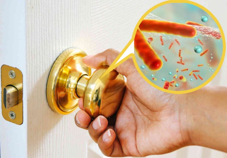 На стенах и полу в этой комнате больше микробов, чем на самом унитазе, ведь если сливать воду при открытой крышке унитаза, то все микроорганизмы из него легко попадают на пол и стены. Выход – всегда сливать воду при закрытой крышке и минимум раз в неделю мыть полы и протирать стены в туалетной комнате.9. Ручки дверей