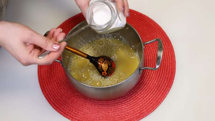 Натрите на мелкой тёрке 50 гр. хозяйственного мыла. Залейте 300 мл горячей воды. Сюда же всыпьте 3 ст. л. горчицы (порошок) и столько же соды.