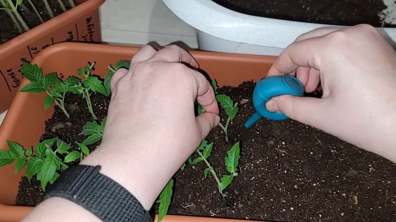 Уход за обрезанными томатами очень простой: для того чтобы обезопасить их от черной ножки, необходимо использовать фитоспорин. Помочь активному развитию корневой системы сможет монокалий фосфат или янтарная кислота. Через 2 недели необходимо ввести комплексные добавки, содержащие калий, фосфор и азот в одинаковом соотношении.