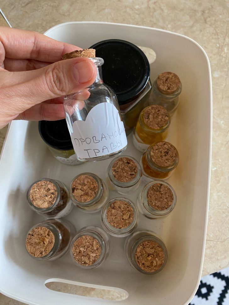 Удобный доступ ко всем специям, которые могут понадобиться при приготовлении блюд, способен значительно упростить процесс. Конечно, можно хранить специи в тех же пакетиках из магазина. А можно приобрести маленькие стильные баночки, пересыпать в них все приправы, базовый набор которых довольно обширен, добавить наклейки с названиями и наслаждаться удобным хранением и уютом.