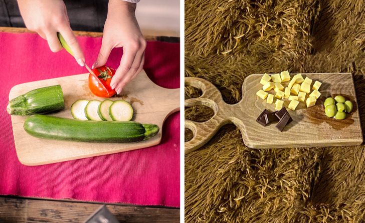 Говорят, что самой удобной и гигиеничной разделочной доской является деревянная. Причина в том, что древесина впитывает остатки пищевых бактерий после мытья и не позволяет им распространиться. Кроме того, наличие таких досок на кухне — это не только очень гигиенично, но и эстетично. Они придают теплоту и красоту интерьеру. Также любители прекрасного оценят необычные доски, например, с ручкой в виде оленьих рогов.