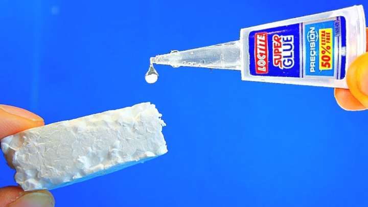 Знали ли вы, что моментальный супер-клей в сочетании с пенопластом превращается в мощное средство, которым можно заполнить образовавшиеся дыры в разных материалах? Попробуйте провести этот эксперимент сами!