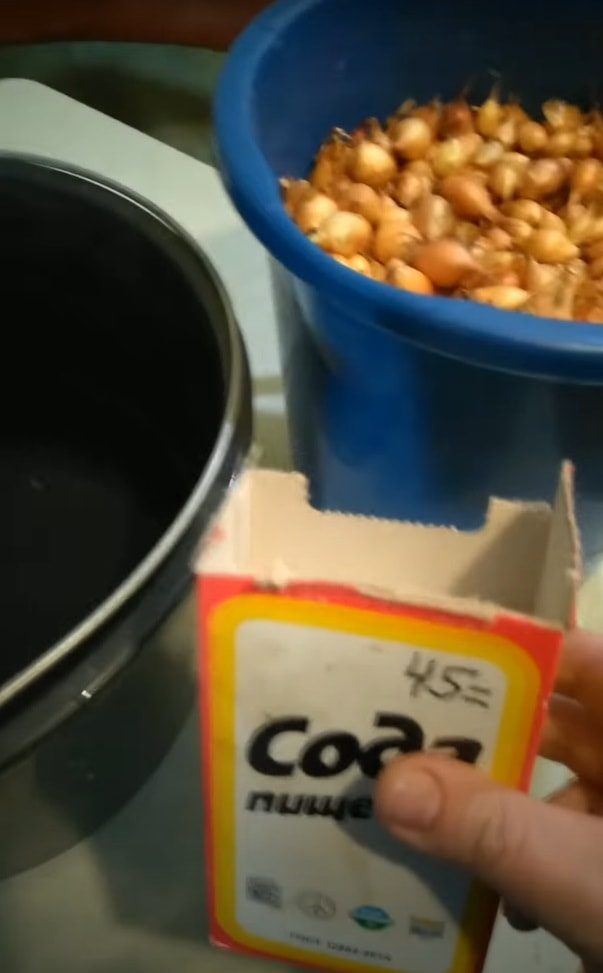 Дать толчок роста луковицам поможет теплая вода с температурой 55-60 градусов. Растворите в 5 литрах воды 5 чайных ложек пищевой соды и залейте полученным раствором лук-севок на 4 часа.