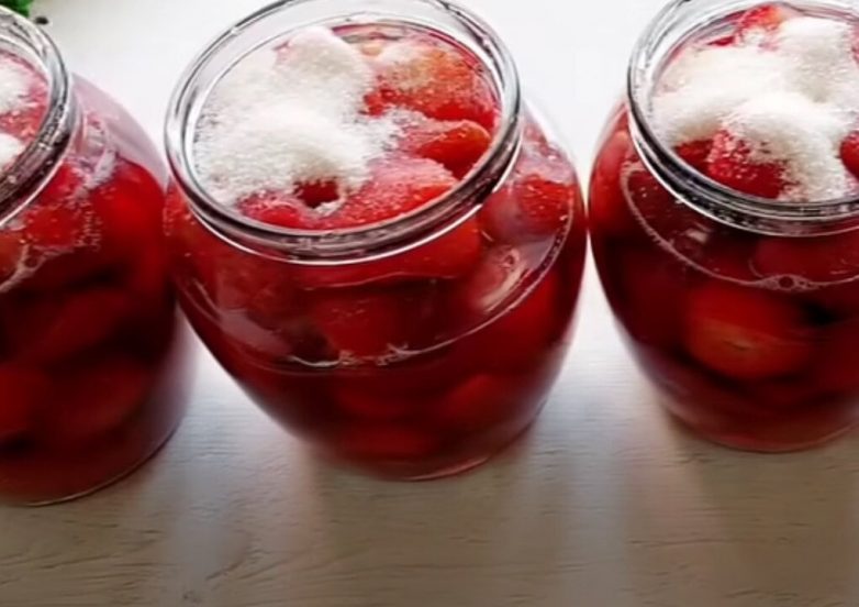 Плотно закройте крышки. Клубника, заготовленная таким простым способом, не потеряет своего вкуса и аромата. Заготовки можно хранить до года.
