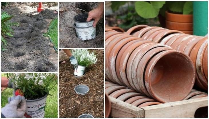 Вы любите разнообразие, поэтому часто приходится пересаживать растения на участке? Тогда этот способ для вас! Для этого вам понадобятся пластиковые горшки, которые необходимо вкопать в землю. Затем вставьте в них контейнеры с сезонными цветами. Присыпаем землей. Как только они отцветут, вы можете поменять их на новые. Участок будет радовать вас вечно цветущими клумбами и удивлять соседей. Цветы из «горшка в горшке» удобно поливать и удобрять. Осенью необязательно доставать горшки из земли. Достаточно весной его почистить от земли и вставить новый горшок с цветами.