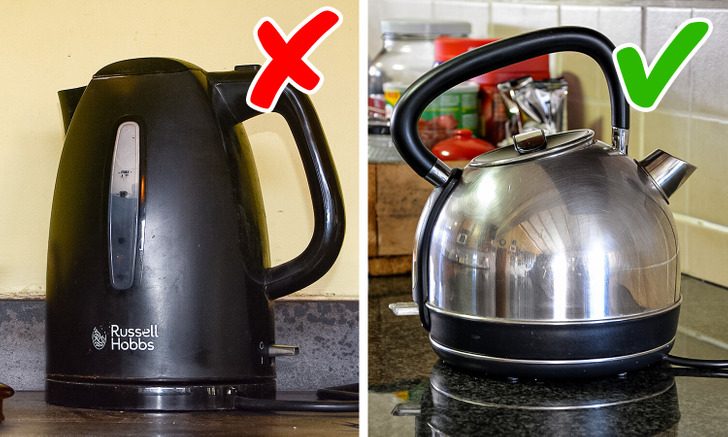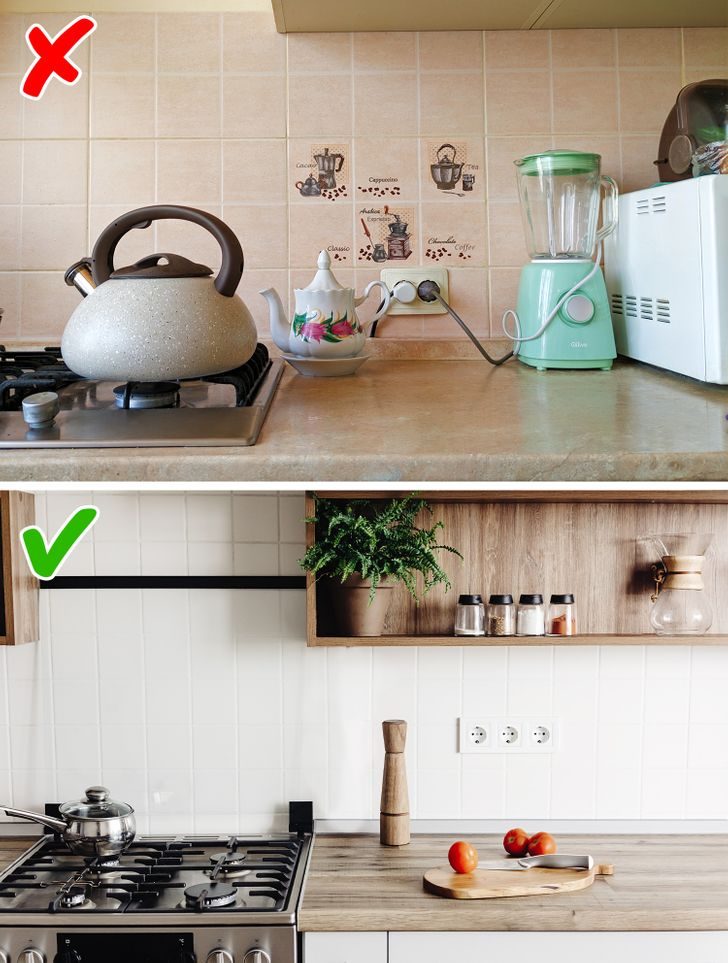 Кухня может быть стильной и опрятной, но если на ней стоит электрический чайник со следами от рук на корпусе или кричащего цвета тостер, то впечатление от нее сразу портится. Поэтому лучше заранее продумать выбор гаджетов. Универсальными считаются металлические: они не привлекают к себе лишнего внимания и вписываются в любой дизайн. Кстати, совсем не обязательно покупать все новое — технику можно покрасить специальной краской.