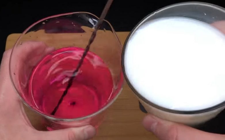 Добавьте к раствору марганцовки 1 стакан молока и хорошо перемешайте.
