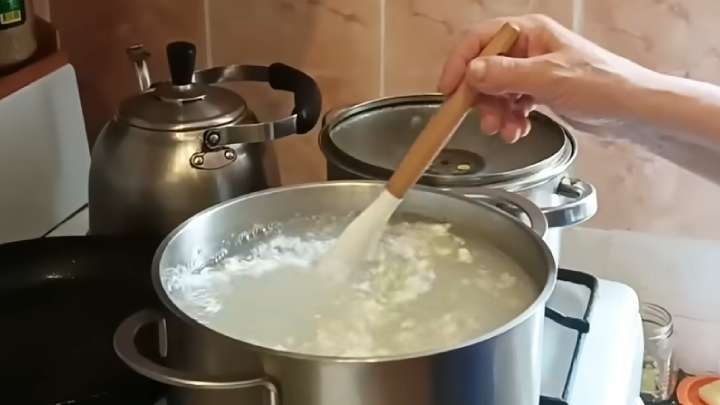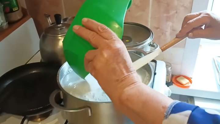 После этого выключите огонь и высыпьте 100 гр. кальцинированной соды. Перемешайте до растворения.