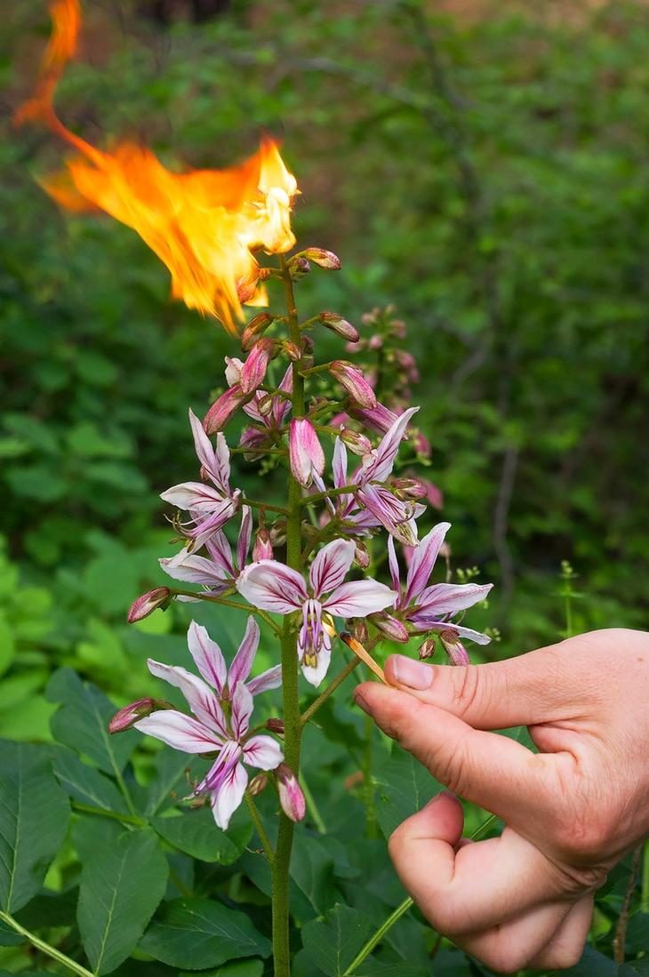 После контакта с ними и воздействия солнечных лучей на коже может появиться раздражение. Растение покрыто маслами, которые и вызывают такую реакцию. А если поднести к цветку спичку или зажигалку, масла воспламенятся. Сам ясенец при этом не пострадает.