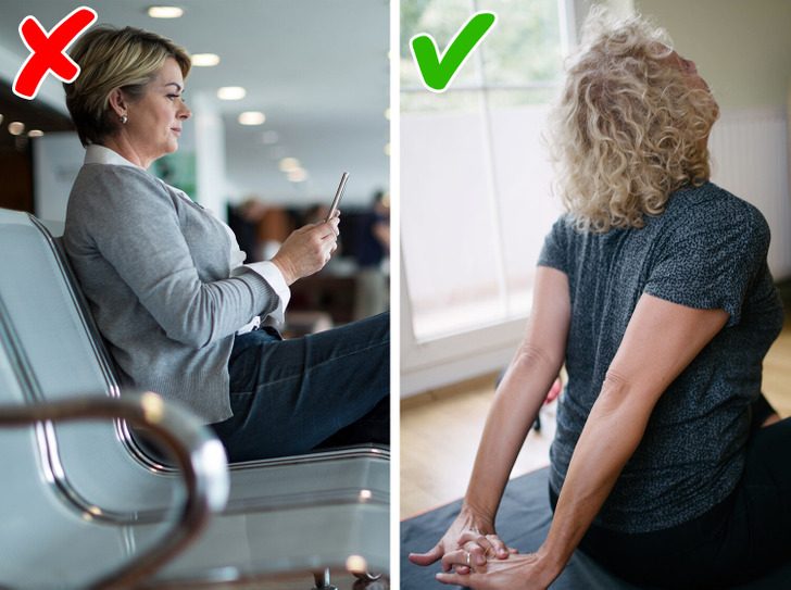 Сиденья в самолете устроены таким образом, что они не дают хорошей поддержки нашей спине. Подложите свернутую куртку или одеяло под поясницу, так позвоночнику будет гораздо комфортнее.
