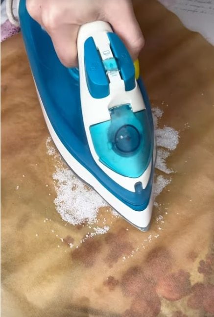Разогрейте утюг и поводите им по соли несколько минут.