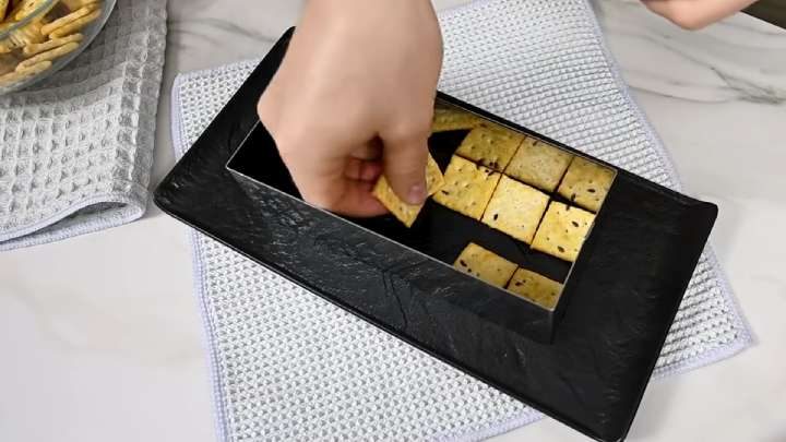 Начните собирать закусочный торт. В форму выложите слой крекеров (выбирайте с хорошим составом).