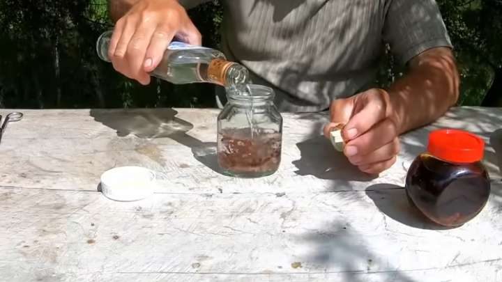 После этого настойку перелейте в бутылку с опрыскивателем, долейте немного воды и пользуйтесь каждые полчаса, распыляя её на открытые участки кожи.