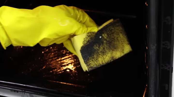 Губкой с раствором обильно смочите все стенки духовки.