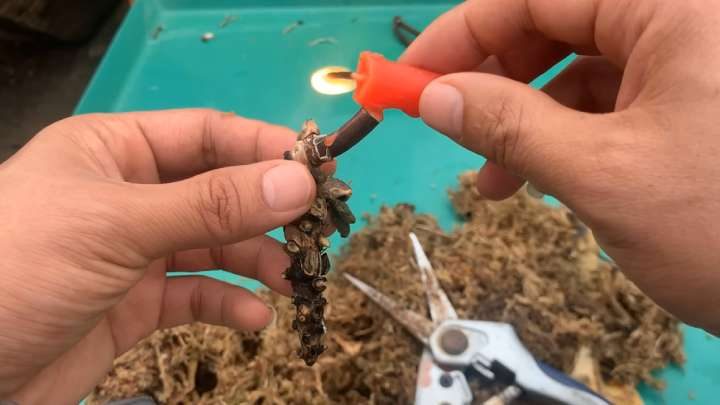 Удалите у орхидеи сгнившие листья и корни. Если есть цветонос — обрежьте его. Главное — оставить шейку. Восковой свечой капните на срез цветоноса, чтобы туда не попадала влага.