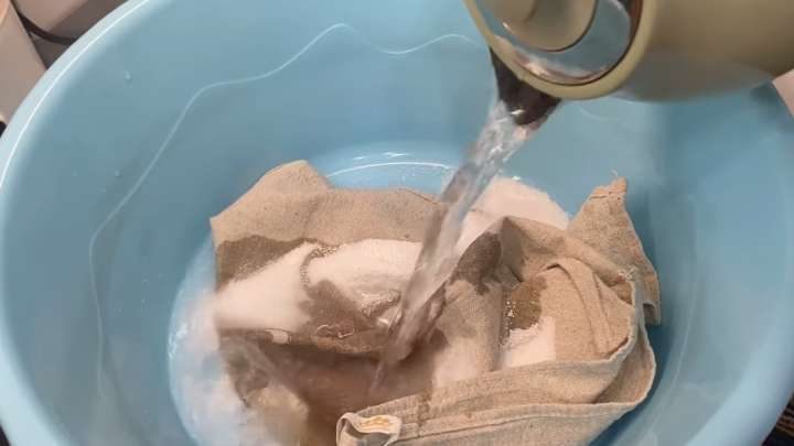 После первого замачивания посмотрите, насколько мутной стала вода — а значит, и большая часть пятен ушла с полотенец!