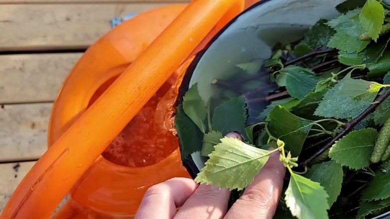 Процедите раствор и доведите до объема 10 л. Подкормку на основе березовых листьев можно вносить как под корень, так и опрыскивать посадки по листу. Используйте подкормку 1 раз в неделю.