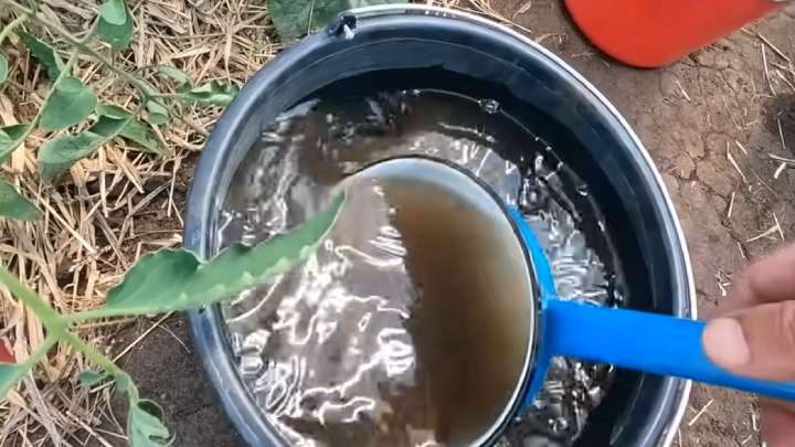 Готовый перебродивший раствор разводите следующим образом: 0,5 поллитровой банки курника на 10 л воды.