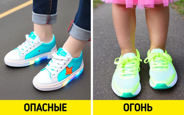 Многим детям нравится светящаяся одежда, туфли или кроссовки. Тут никто не поспорит, выглядит супер. Но покупая такие вещи, каждый родитель должен отдавать себе отчет в том, что в зоне досягаемости ребенка будут батарейки, которые малыши нередко глотают. И даже если кажется, что ребенку не под силу ее вытащить, лучше перестраховаться, ведь детские руки могут разобрать что угодно. Лучше оставить такую обувь на более сознательный возраст.