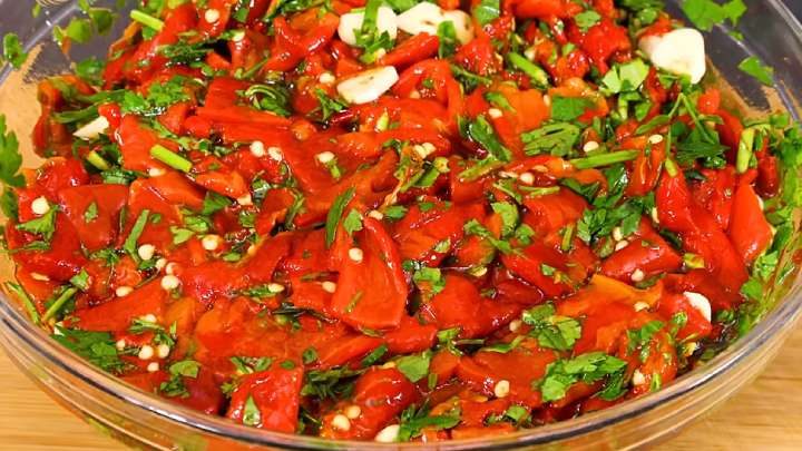 Приготовьте сладкий перец на зиму необычным способом — в виде печёного салата с чесноком и зеленью. Зимой каждая баночка будет нарасхват в семье!