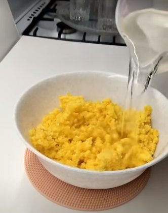 Полученную однородную массу залейте 1 л воды и оставьте настаиваться на 15-20 минут.