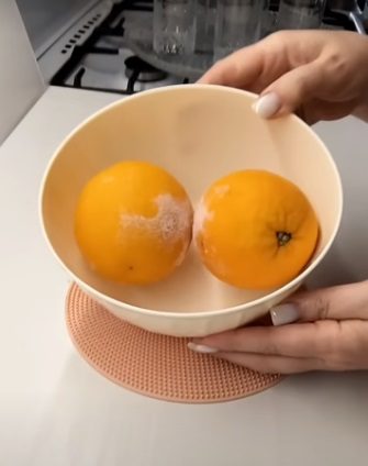 Залейте два неочищенных апельсина кипятком и оставьте в воде на 5 минут. После того как апельсины остынут, положите их в морозильную камеру и оставьте до полного замораживания.
