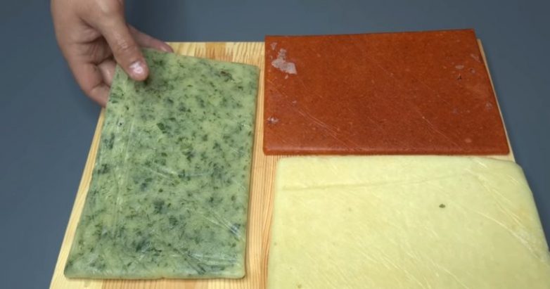 Переложите чесночную массу в полиэтиленовые пакеты и сформуйте пласт толщиной около 1 см.