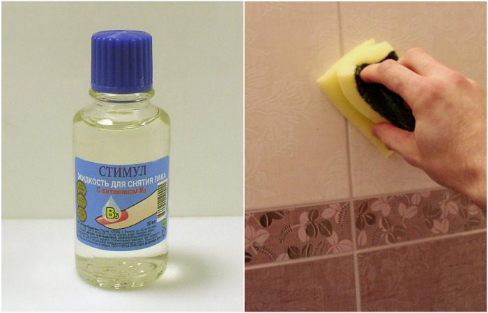 Многие девушки считают, что ацетон нужен только для снятия лака с ногтей. Но на самом деле у него есть много скрытых свойств. В частности, это средство отлично справляется с пятнами на плитке, поэтому пару флаконов обязательно нужно держать под рукой в ванной и на кухне. Достаточно лишь смочить губку небольшим количеством жидкости для снятия лака и пройтись по загрязненным участкам. Пятна отмываются безо всяких усилий, а запах быстро выветривается, особенно если включить вытяжку или оставить открытой дверь в комнату.