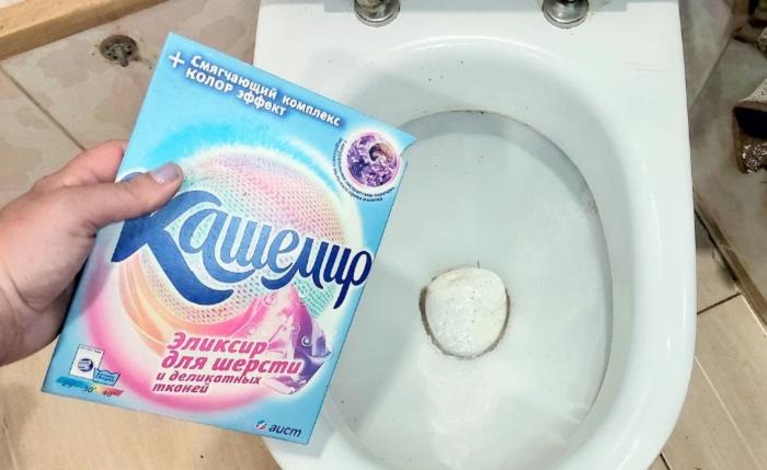 Порошок помогает очистить унитаз от загрязнений.