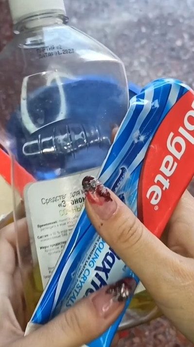 Соедините 1 ч л зубной пасты и 3 ч л средства для мытья посуды.