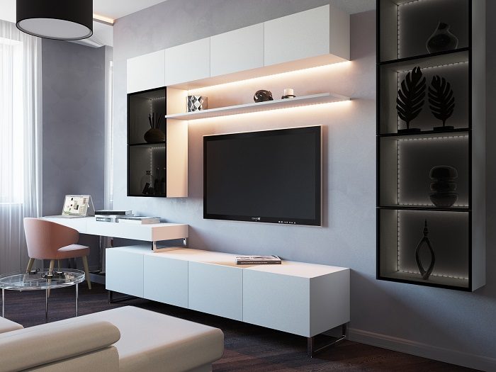 С учетом того, что многие квартиры не отличаются большими габаритами, желание хозяев сделать пространство легким, воздушным, отказавшись от габаритной мебели, вполне объяснимо.