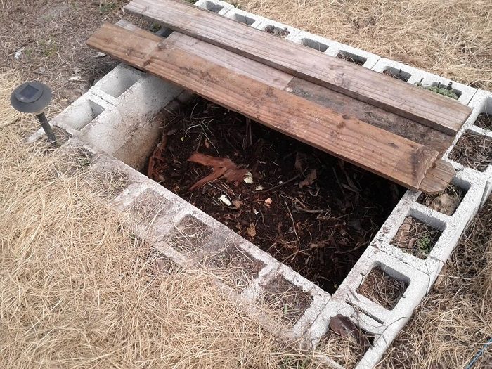 Компостную яму можно накрыть досками.