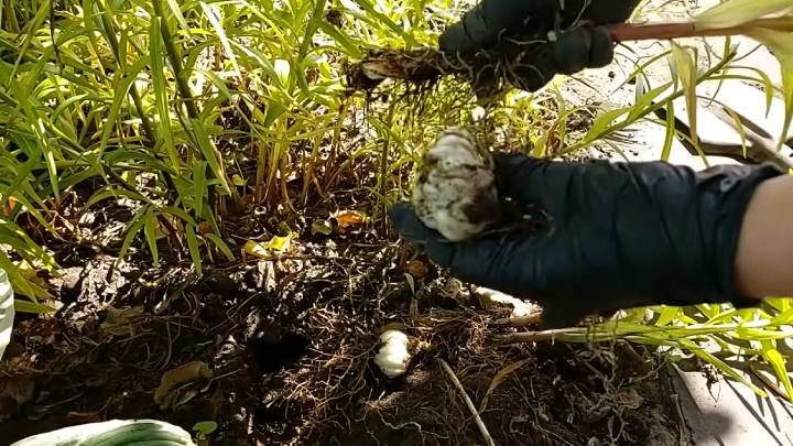 Лилии выкапываем, стараемся не повредить корни. Разделяем луковицы.