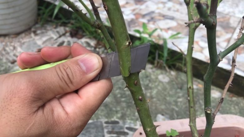 Используя острый стерильный инструмент, сделайте продольный надрез на стволе.