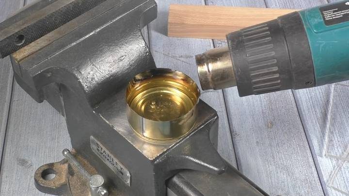 В чистую консервную банку налейте 3 ст. л. воды, нагрейте.