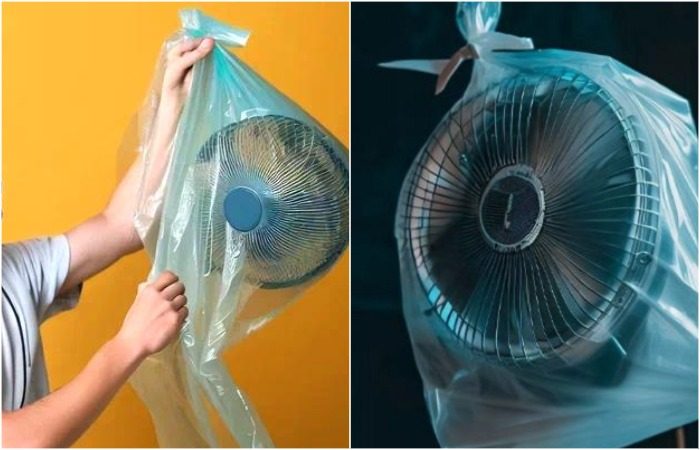 Накройте вентилятор пакетом.