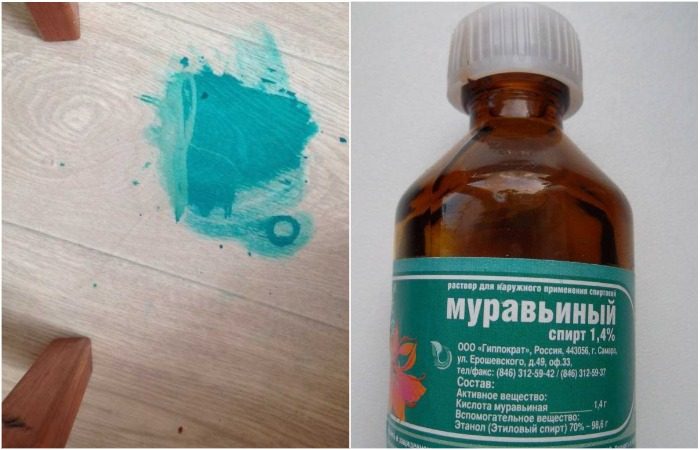 Зеленку поможет убрать муравьиный спирт