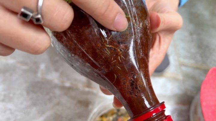 Отрежьте верхнюю часть пластиковой бутылки с горлышком.
