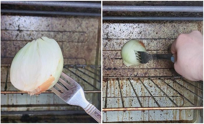 Если вы не любите пользоваться агрессивной бытовой химией, используйте подручные натуральные средства, которые абсолютно безвредны для здоровья. Например, можно прибегнуть к помощи обычной луковицы. Разрежьте ее пополам и насадите на вилку срезом наружу. Разогрейте духовку и осторожно обработайте загрязненные участки луковым соком. Ферменты, которые входят в его состав, растворяют даже застарелый жир, не говоря уже о свежем. В конце вам останется лишь остудить духовку и протереть ее влажной тряпкой, чтобы убрать остатки загрязнений.