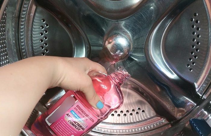 Необязательно вызывать мастера или покупать дорогую бытовую химию, производители которой уверяют, что средство на раз справится с проблемой. Достаточно залить в пустой барабан две-три крышечки ополаскивателя для полости рта, после чего запустить режим полоскания. После этого вы сможете забыть о неприятном запахе. А в качестве бонуса стиральная машина продезинфицируется изнутри.