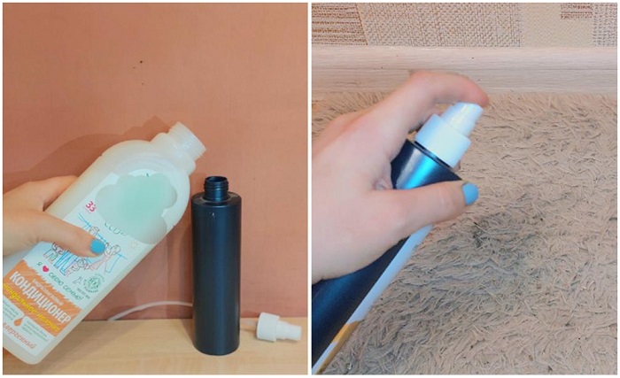 Вместо стандартных методов борьбы с проблемой, попробуйте воспользоваться помощью кондиционера для белья. Разведите его с водой в пропорции 1к1, хорошо перемешайте, перелейте в пульверизатор и распылите на участках, где обычно скапливается шерсть. Дело в том, что кондиционер обладает антистатическим эффектом, благодаря которому шерсть, ворсинки и прочие загрязнения будут оседать значительно меньше. Кроме того, станет гораздо проще пылесосить.